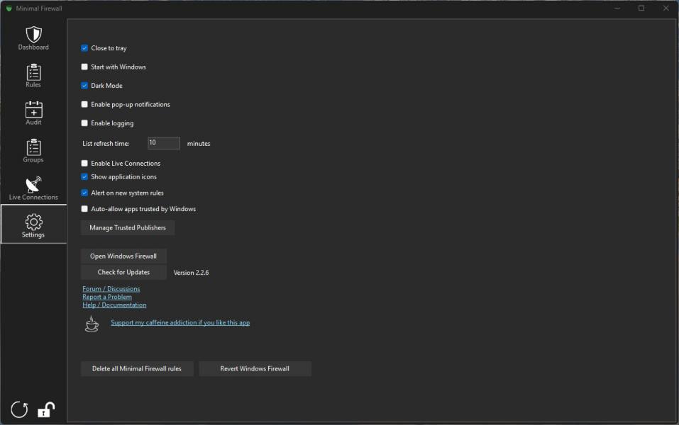 ● Приватность: Minimal Firewall не содержит телеметрии, не требует интернет-доступа и хранит все правила на вашем ПК.