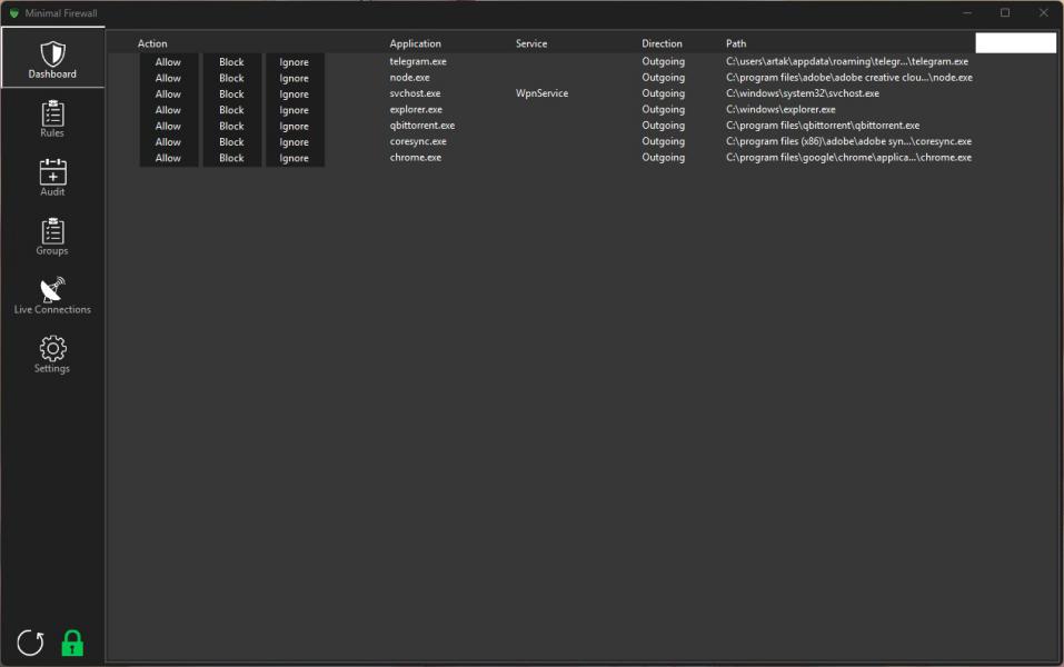 Minimal Firewall работает по принципу «запрещено всё, что не разрешено». Это означает, что ни одна программа не сможет подключиться к сети без явного согласия пользователя. Таким образом можно эффективно блокировать скрытые обращения, телеметрию, вирусную активность и шпионское ПО.