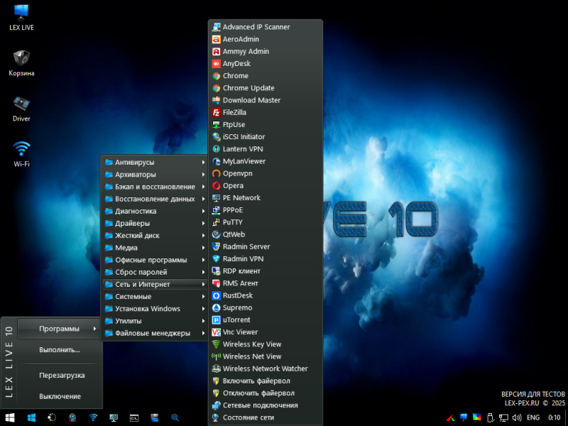 LEX LIVE 10 имеет достаточное количество установленного софта для того чтобы просмотреть содержимое диска, или подключиться к сети и произвести все необходимые действия на машине для восстановления системы и решения других проблем.