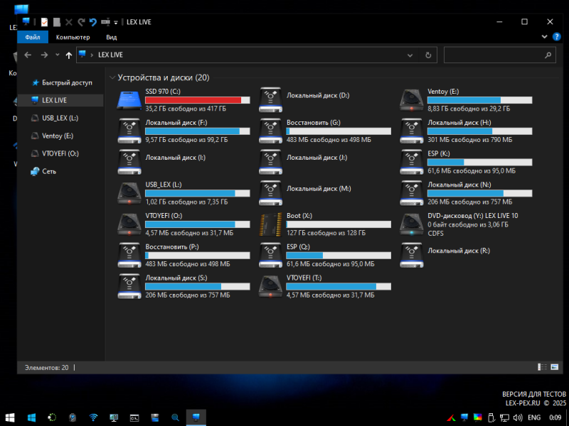 LEX LIVE 10 - портативная операционная система для работы, интернета, ремонта компьютеров, которая загружается с USB устройства в оперативную память вашего ПК. Таким образом, данная система может работать даже если у вас нерабочий диск, или он совсем отсутствует. LEX LIVE 10 имеет достаточное количество установленного софта для того чтобы просмотреть содержимое диска, или подключиться к сети и произвести все необходимые действия на машине для восстановления системы и решения других проблем. LEX LIVE 10 - портативная операционная система для работы, интернета, ремонта компьютеров, которая загружается с USB устройства в оперативную память вашего ПК. Таким образом, данная система может работать даже если у вас нерабочий диск, или он совсем отсутствует.